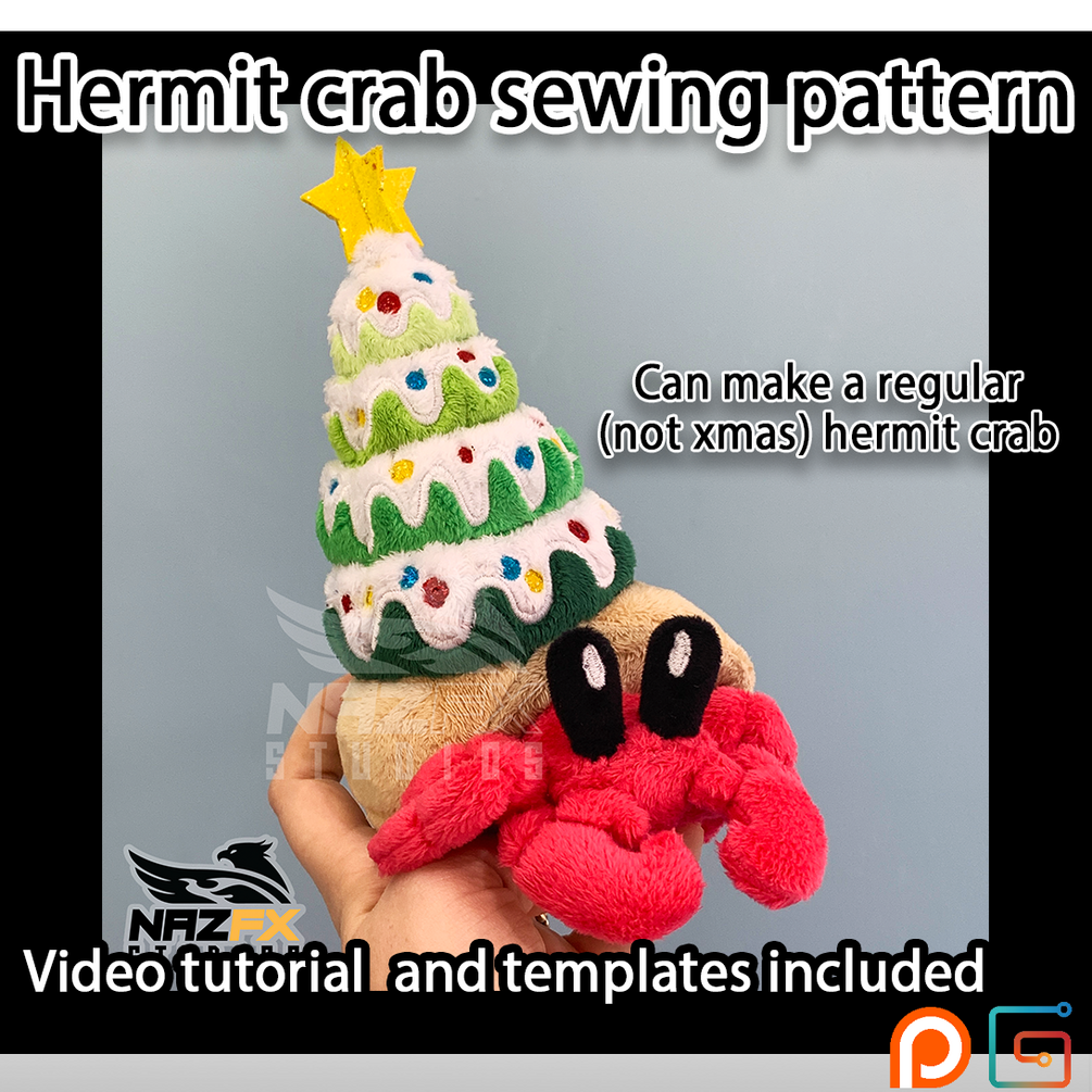 Learn how to make your own adorable hermit crab plush. It can be made with the Xmas theme as pictured, or skip the xmas design and make a regular shell for your hermit crab.