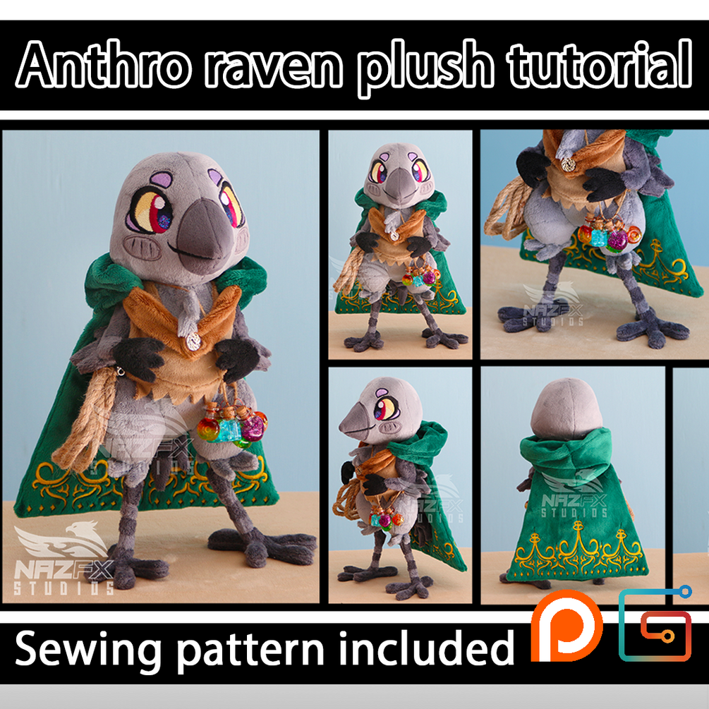 Learn how to make your own adorable anthro raven plush. This purchase includes the digital sewing pattern (to be printed in A4 format) as well as a comprehensive video tutorial. Some sewing/plush experience is highly recommended.